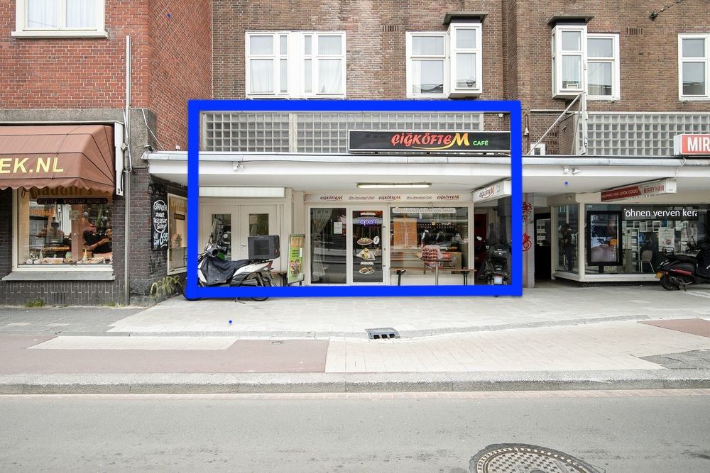 - Gelegen aan de Jan Evertsenstraat, een drukke winkelstraat in Amsterdam-West